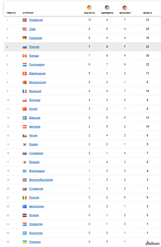 Попробуйте подсчитать теперь, как бы расположились в медальном зачете сегодняшние лидеры.