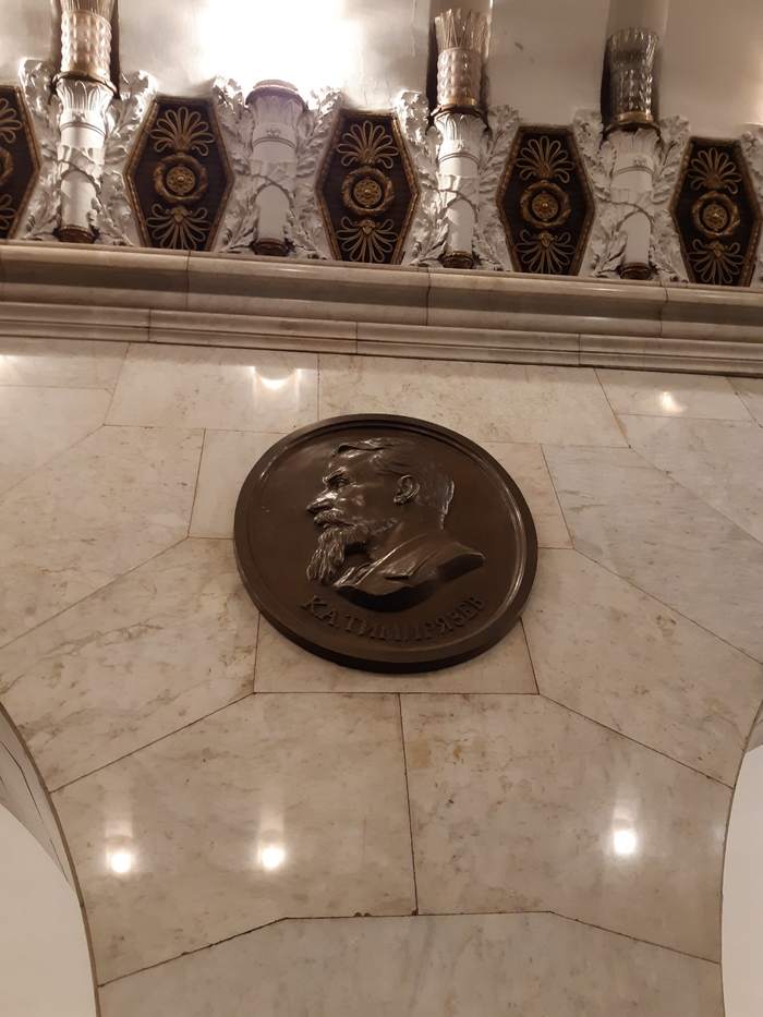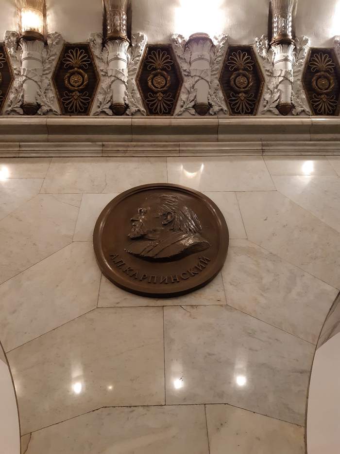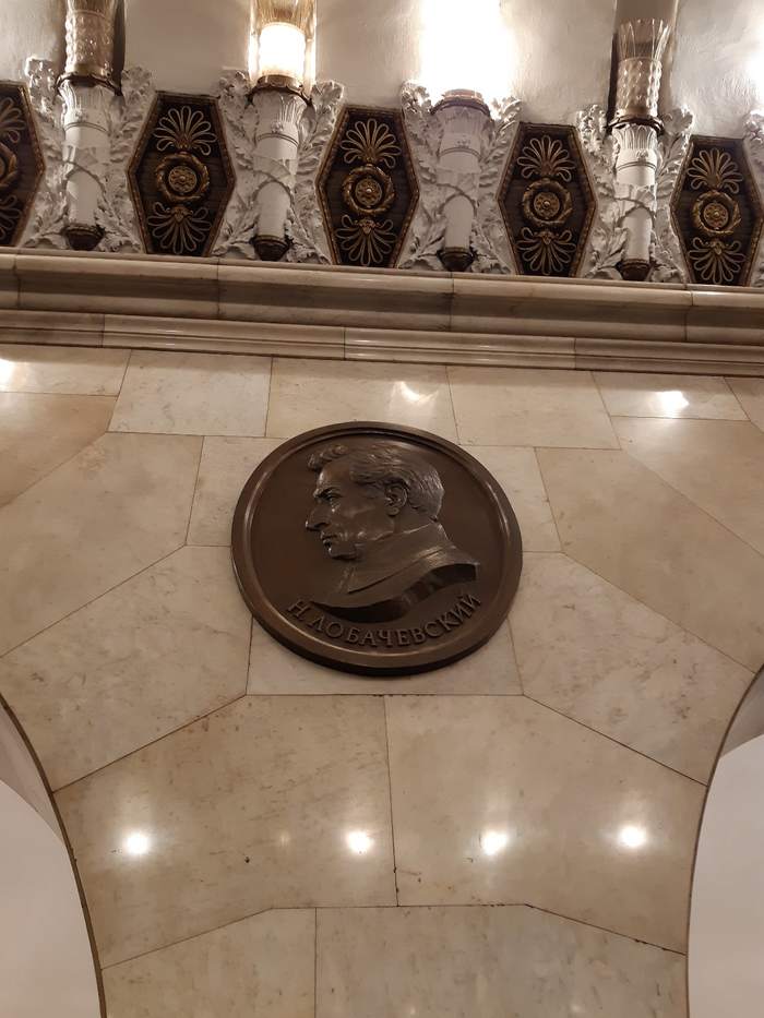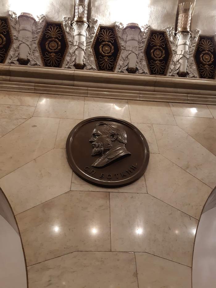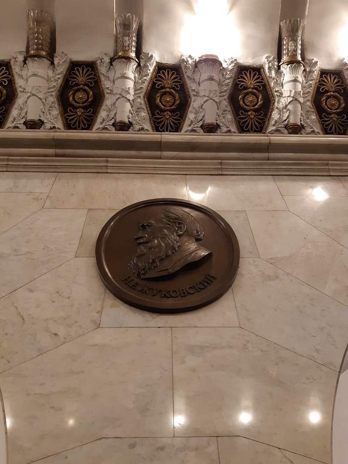 Первый зал метро Технологический институт. Медальоны. Основная тема оформления — достижения русской и советской науки.
