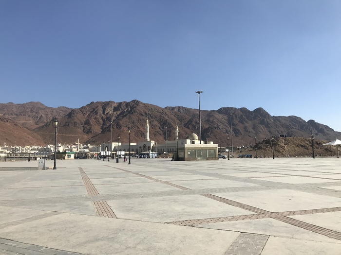 Первое место было гора Ухуд. Памятна она тем, что там прошла битва, в которой мусульмане первый раз проиграли.
