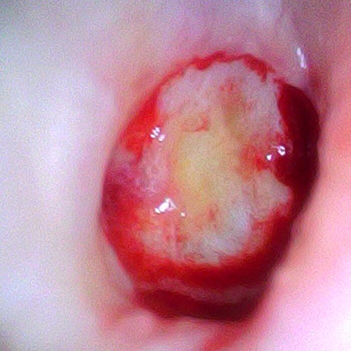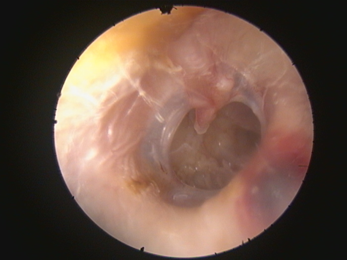Акубаротравма 1 год назад. Субтотальный дефект перепонки справа (почти полное отсутствие), сделали тимпанопластику 1 типа по технике overlay (фасция на остатки фиброзного слоя). Вторая фотка - при удалении тампонов как выглядит (4 недели).