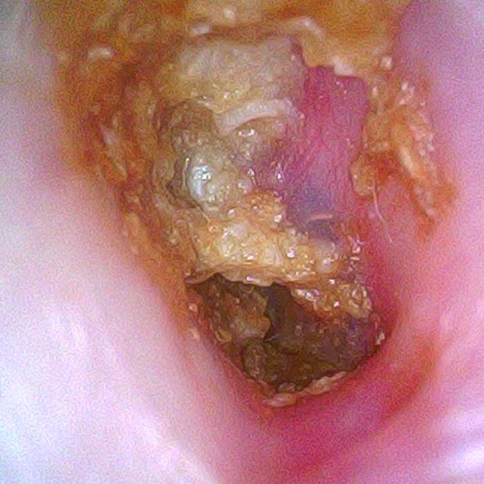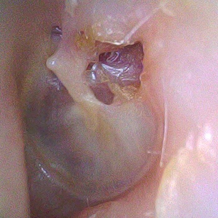 Я, конечно, хирург, но серу убрать их уха никто не отменил. Надо проверять что под ней. Вот такое убираем, это не залежи совсем. История рукотворная стопроц. Сера сейчас на перепонке, она в том отделе даже не синтезируется.
