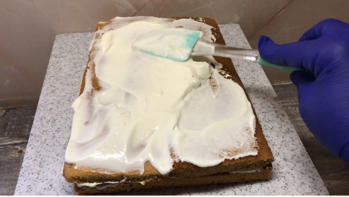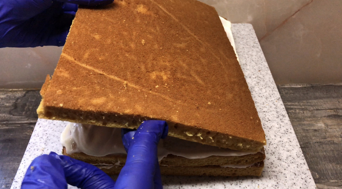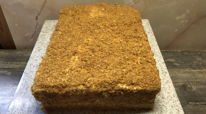 Собираем торт и каждый корж пропитываем медовой водичкой.
