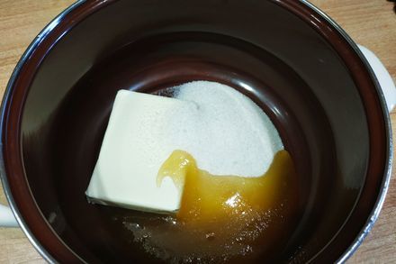 Ставим на небольшой огонь, ждем когда сахар растворится, масса начнет нагреваться, сода начнет гаситься и начнет пениться и сильно увеличиваться в объеме, поэтому кастрюльку берите побольше)