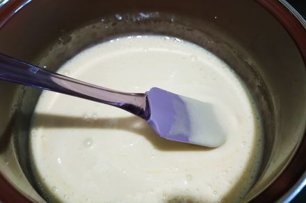 Сразу же массу переливаем в другую емкость, в кастрюльке оставлять нельзя, т.к. она будет продолжать темнеть и может появится вкус горелого, поэтому переливаем и даем остыть, чтобы масса была тепленькая.