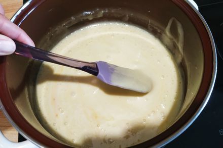 В течении нескольких минут держим массу на огне, постоянно перемешиваем и доводим до желаемого цвета, масса должна получиться карамельного цвета.