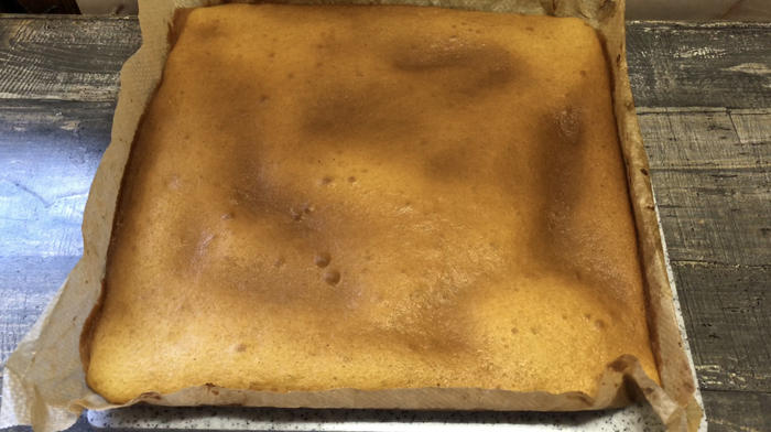 У бисквита получается небольшая "шапочка" поэтому ее срезаем и пробиваем в блендере (насадкой нож) в крошку, она пойдет на обсыпку торта.
