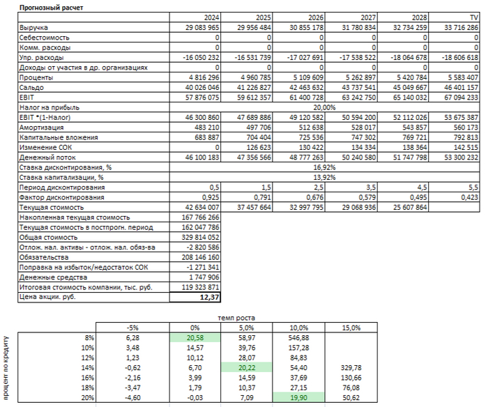 Расчет стоимости акции АФК Система методом дисконтированных денежных потоков⁠⁠