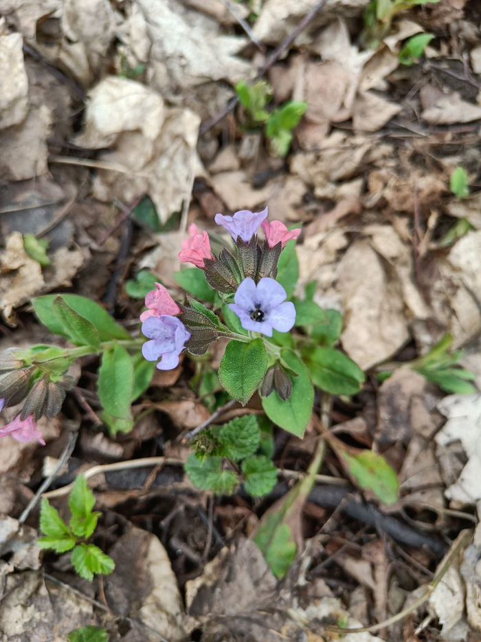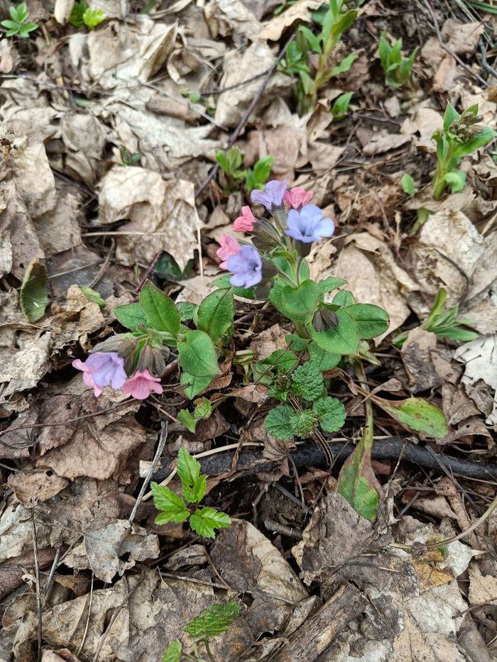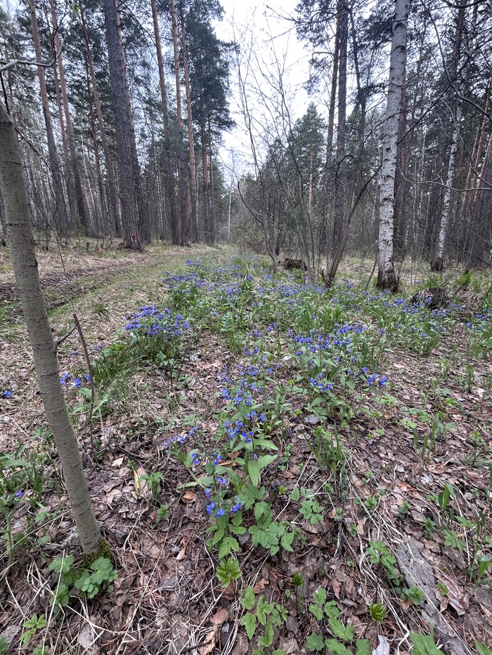 У нас наконец-то весна! Весь лес порос медуницей. Она везде. От этого цвет леса приобрёл голубой оттенок.