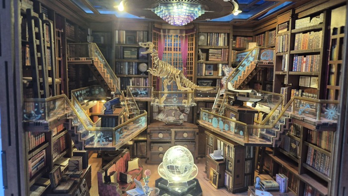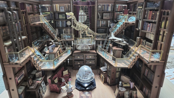 Крепким хрустальный глобус и проверяем работает ли свет. А ну и собирать и расставлять книжки по полкам не забываем.