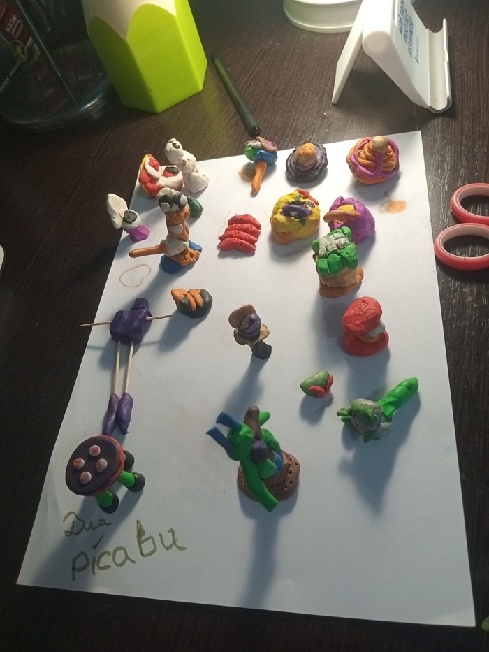 Сегодня третий день как приехал с вахты. Решили с дочерью что нужно бы привезти зимнюю амуницию (Санки, ледянки, лопатки,херня для лепки снежков и КОНЬКИ) Алиса какие коньки? Ну коньки. Алиса у тебя не было коньков. Да и не особа то я и помню чтобы она на коньках умела кататься.Оказываеться думала я в магази и не мешало бы коньки внести в этот список. Я объяснил своей четырёхлетний дочери что я еду к деду в гараж за нашими старым барахлишком. Взял значиться "солярис" в делимобиле и поехал. Погодка у нас в Самаре сегодня так себе! Короче натолкался, накопался, выбрался и "Амкодор" бля 🤬 дорогу чистит. Сука у меня перья в пуховике мокрые от пота. Добрался домой. Дочь предложила полепить пластелин. Вот что получилось.