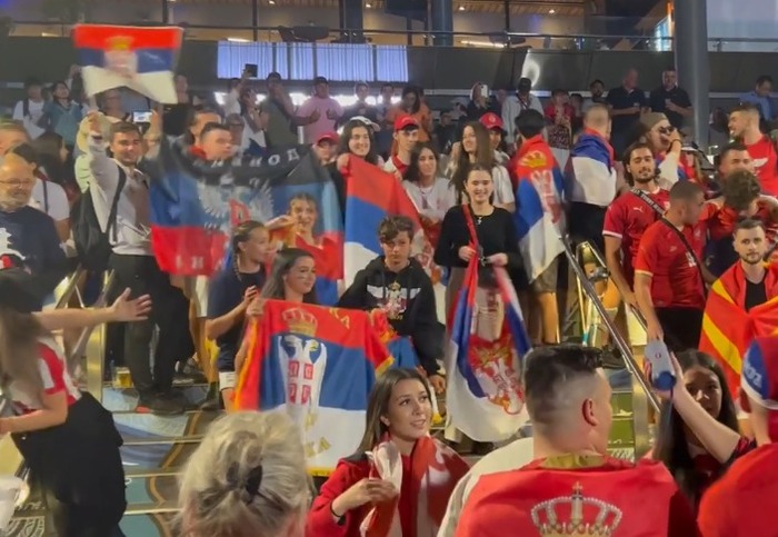Болельщики, с сербскими флагами, после матча кричали: «Россия» и «Сербия».