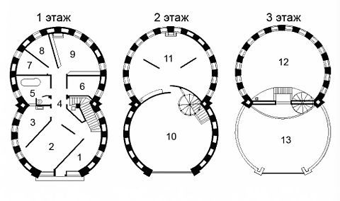 Эксперименты с круглым планом появились в чертежах Мельникова к 1922 году. Архитектор рисует эскизы овального и даже яйцеобразного здания, продолжая отрабатывать интерьер. Окончательный вариант проекта, предусматривающий сочетание двух врезанных друг в друга цилиндров.