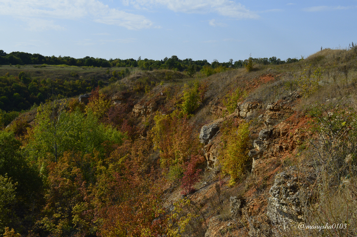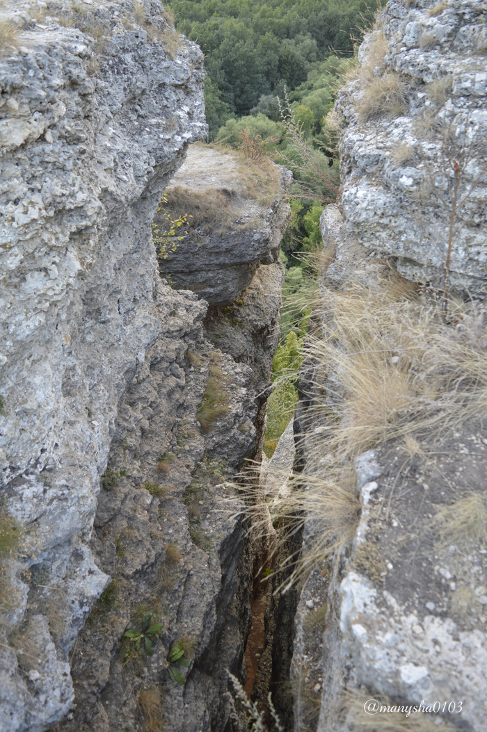 На обратном пути заехали еще на одно место, которое тоже называется Воргольские скалы. Известняковые скальные выступы возвышаются на десятки метров над рекой Воргол. Страшно, но очень красиво, аж дух захватывает.