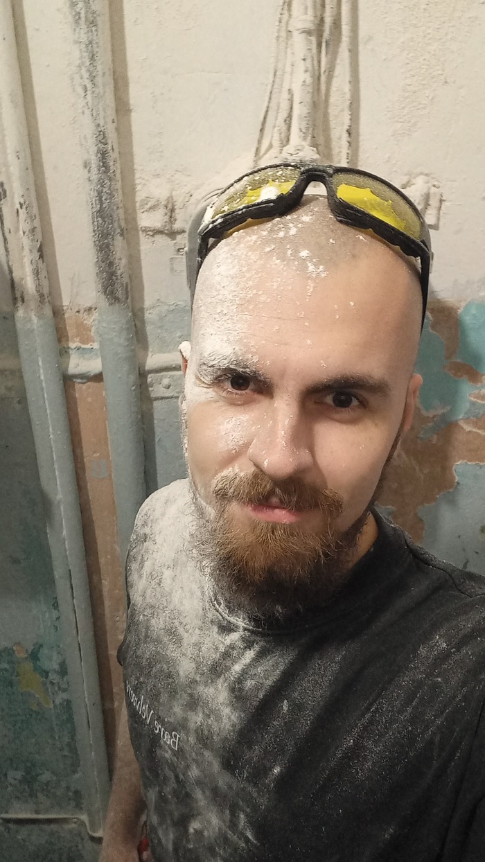 Работаю слесарем-ремонтником на мукомольном производстве. На фото - я в первый час после начала смены))) Иногда в работу в буквальном смысле приходится погружаться с головой.