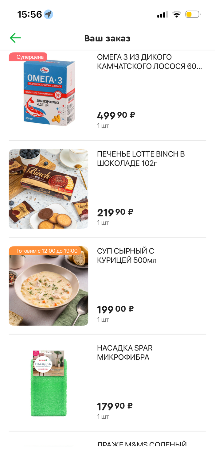 Я получила уведомление от spar, о том, что заказ собран с изменениями. Какие могут быть изменения? Открыла уведомление и увидела в списке сырный суп, который в корзину не добавляла. Это плюс 200 рублей к чеку. Это ладно, но дело а том, что я действительно люблю этот суп и всегда его беру оффлайн, благо spar через дорогу.