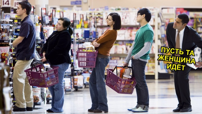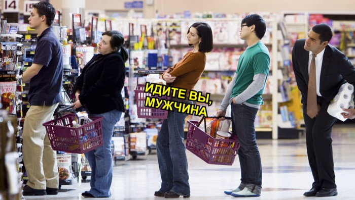 Уже несколько раз замечаю, что на кассе человек перед тобой ждёт до последнего и не двигается, перегораживая собой путь к ленте, даже если там у него лежит один гребный сырок, а я сзади трясущимися руками держу кучу покупок, подпирая верхние продукты подбородком.. Потому что, когда я заходила в магазин, я думала: "Возьму курицу и молоко, зачем мне корзина".