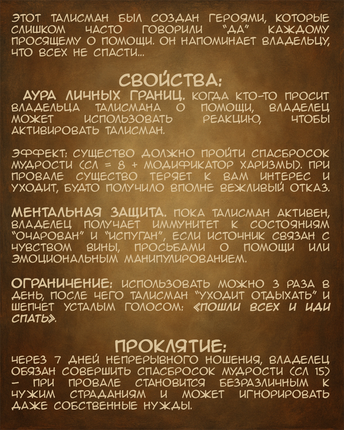 😵 Только представь - боевка с кучей персонажей, длинная очередь, перед тобой три партийных кастера не могут определиться какое заклинание выбрать, ты ждешь свой ход уже 20 минут... и один из врагов накладывает на тебя паралич. То есть, тебе придется ждать еще как минимум 20 минут до своего следующего хода. Кайф же!