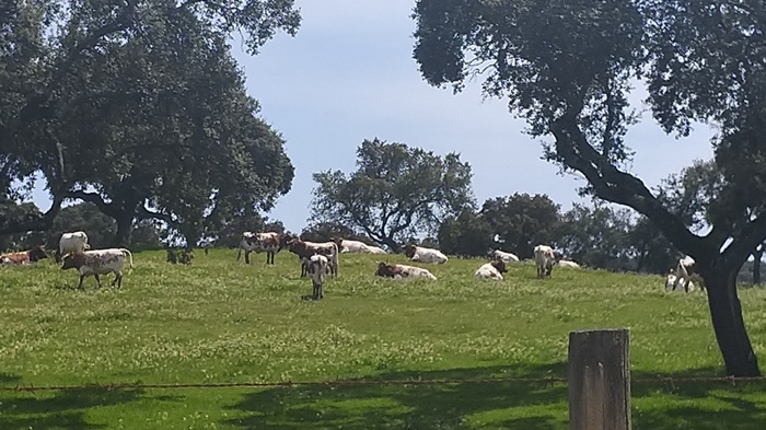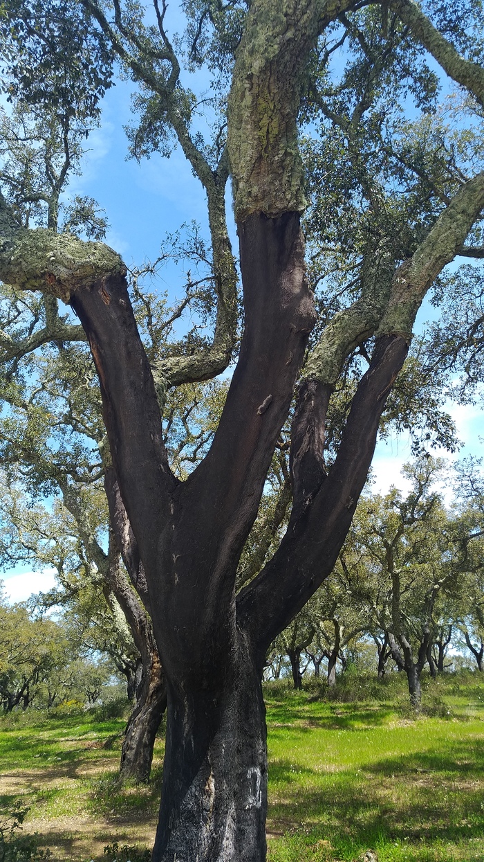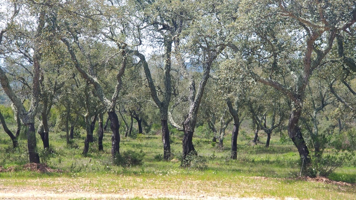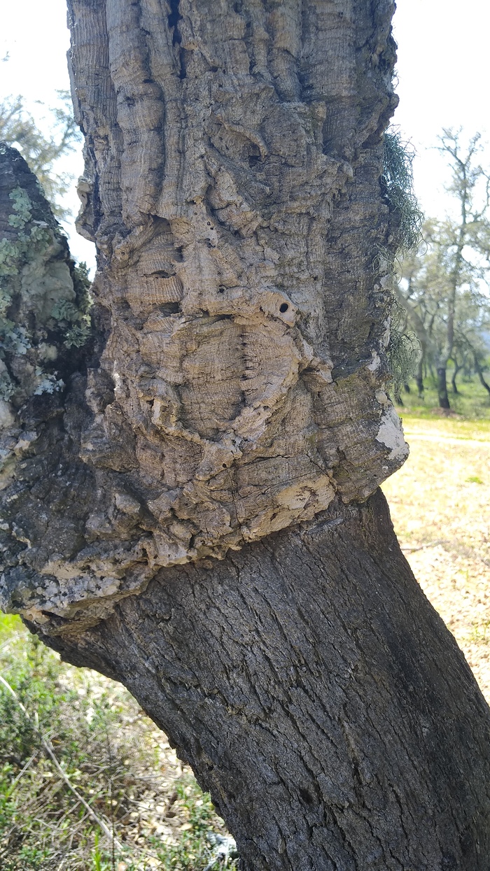 Комплекс находится в окружении плантаций пробкового дуба. На деревьях видно, как нарастает на стволе пробка и как ее срезают слоями.