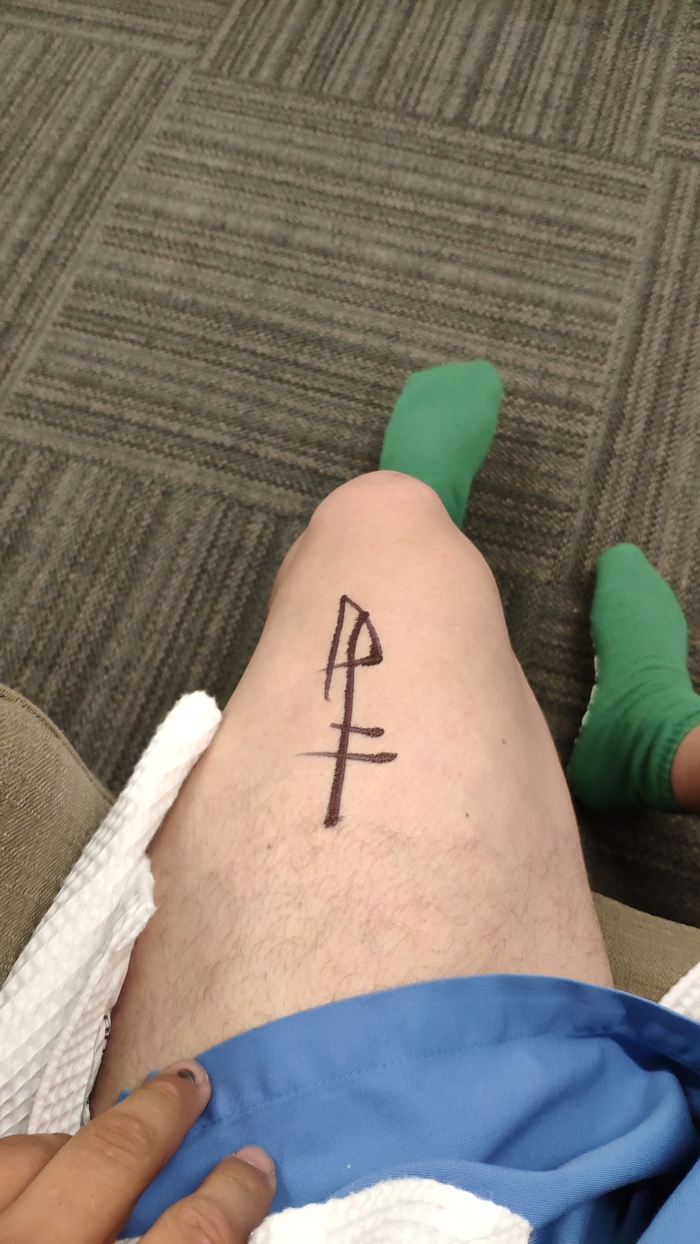 Хирург начертала стрелку, чтоб ногу не перепутали