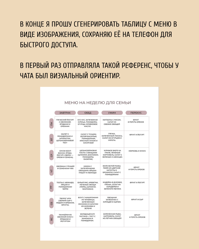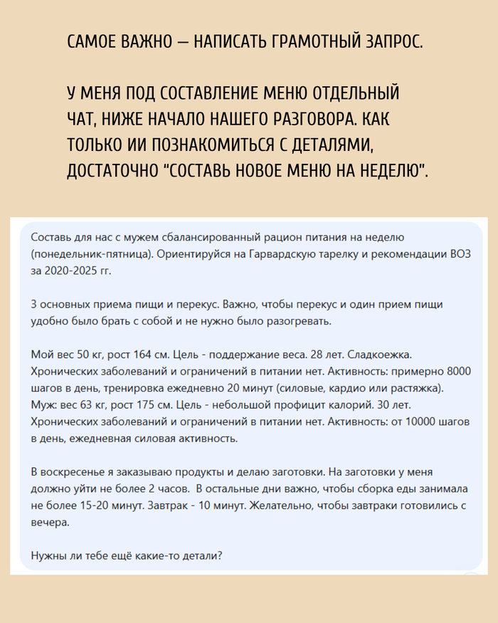 Как я за 15 минут составляю меню на неделю с ИИ