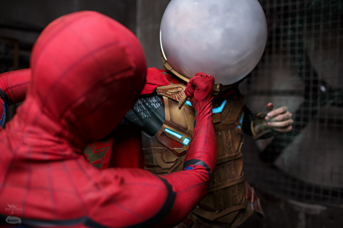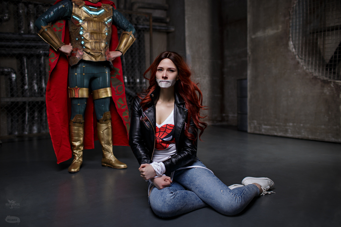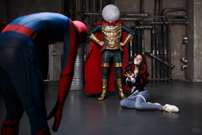 Человек-паук не зря всегда волнуется о сохранении тайны своей личности. Иначе враги смогут навредить его родным и близким. Именно эту ситуацию Мы и обыграли в шуточной форме) Мистерио узнал, что под маской Паука скрывается Питер Паркер и похитил его возлюбленную Мэри Джейн.