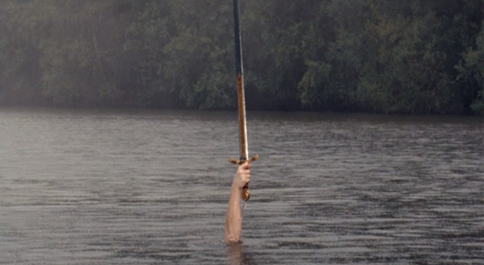 Понимая, что конец близок, Артур приказал своему последнему верному оруженосцу, сэру Бедиверу, отнести его легендарный меч Экскалибур обратно Владычице Озера, от которой он когда-то получил его. Лишь после долгих колебаний (ибо Бедивер дважды не решался выбросить такой драгоценный клинок в воду) он выполнил приказ: рука в белой парчовой перчатке поднялась из озера, схватила меч и скрылась в глубине. Затем из тумана над озером появилась черная ладья. В ней были три королевы в траурных одеждах: Моргана ле Фей, Гвиневра и Владычица Озера.