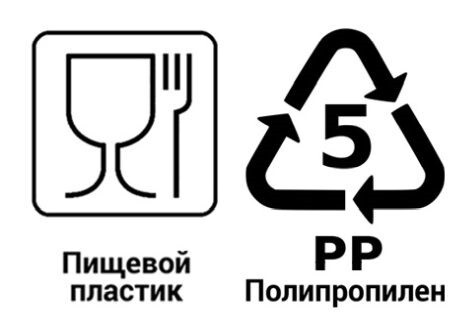 Этими значками обозначается пластик, который является пищевым, а также пригоден для холодных и горячих продуктов.