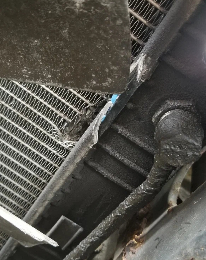 Прокатиться нам не удалось, так как радиатор был пробит и отсутствовала охлаждающая жидкость.