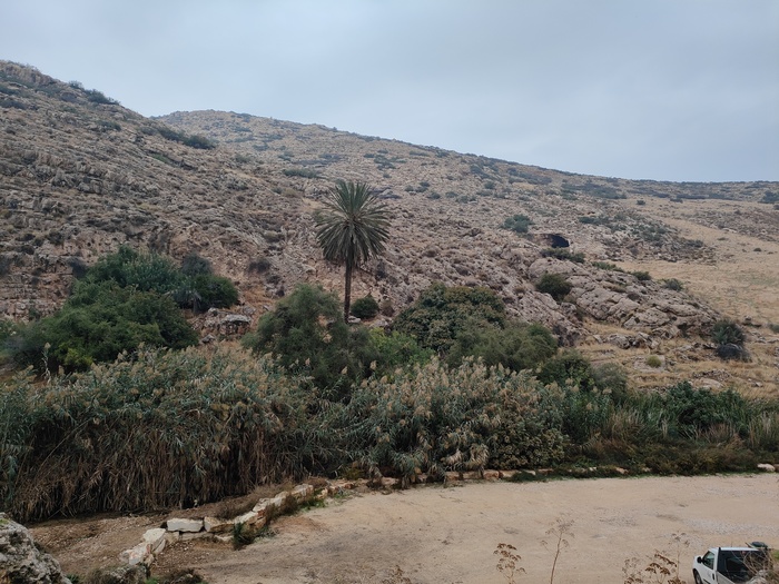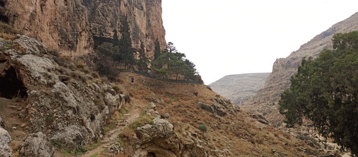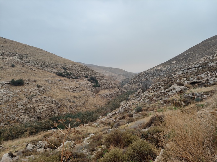 Утром забираем сухпаек (уже не помню, что там, но вроде неплохой), и в очередной раз грузимся в автобус. И, наконец-то, он полноразмерный, места хватает всем с избытком. Первая остановка у нас к местности Эйн Фаран в ущелье Прат, оно же по-арабски Вади-Кельт, то же самое ущелье, где находится греческий монастырь Георгия Хозевита. Вот такое оно длинное.