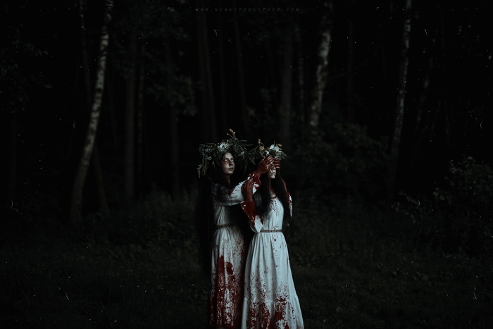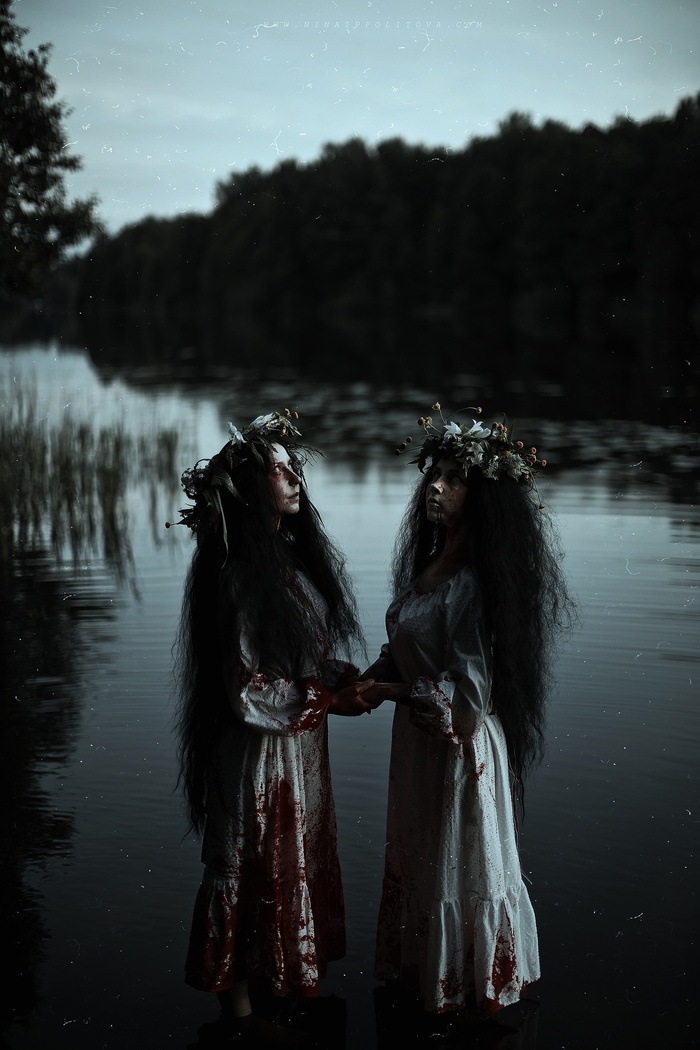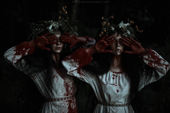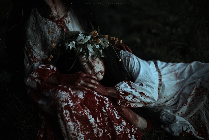Иду дальше. В трапезной между столов среди опрокинутых лавок лежат обнажённые мёртвые женщины, их кровь смешалась с оплывшим воском раскиданных на каменном полу свечей. Тикают часы, стучат, заполняют своим звуком застывшее пространство. От тел пахнет насилием и опасностью. Не для меня, для напуганных девочек. Я должна увести их отсюда, потому что скоро, я чую это, будет поздно. Я не знаю, кто или что им угрожает: люди ли с оружием, разорвавшийся ли снаряд, воздух ли, отравленный болезнью. Направляюсь к ним.