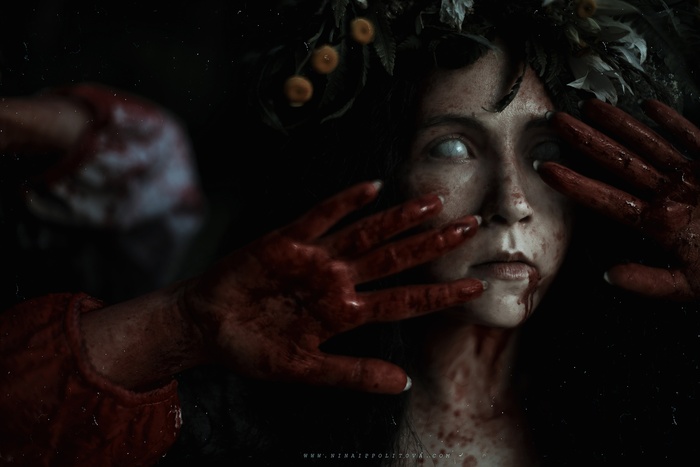 Никто не мешает мне войти внутрь, в коридорах темно и тихо, только доски скрипят под моими босыми ногами. Здесь нет зеркал, я не могу себя увидеть со стороны, но знаю, как выгляжу: обнажённое тело, человеческое, женское, белое, голову и плечи, как капюшон кобры, покрывает платок, лицо открыто, и оно – обтянутый кожей череп. Не выражающий никаких эмоций, на нём не может отразиться ничего, кроме смерти. Круглые провалы глаз-глазниц, не рот, а пасть, оскал, расщелина. Раньше я не была такой, но это не кажется мне странным.