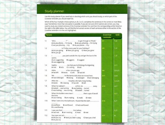 В "Study guide" собраны упражнения буквально из всех юнитов учебника. Во время прохождения теста, учебник сам будет указывать вам на пробелы в знаниях, а также подскажет темы каких юнитов вам следует подучить. Номера юнитов ("Study unit"), из которых взят тот или иной вопрос для теста, находятся прямо напротив самих упражнений "Study guide".