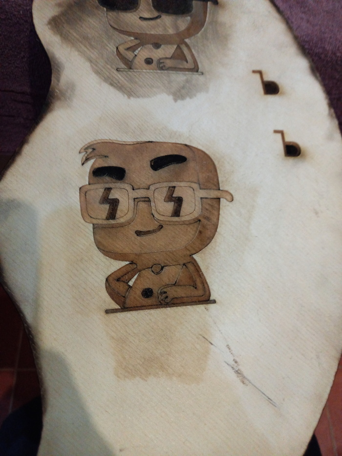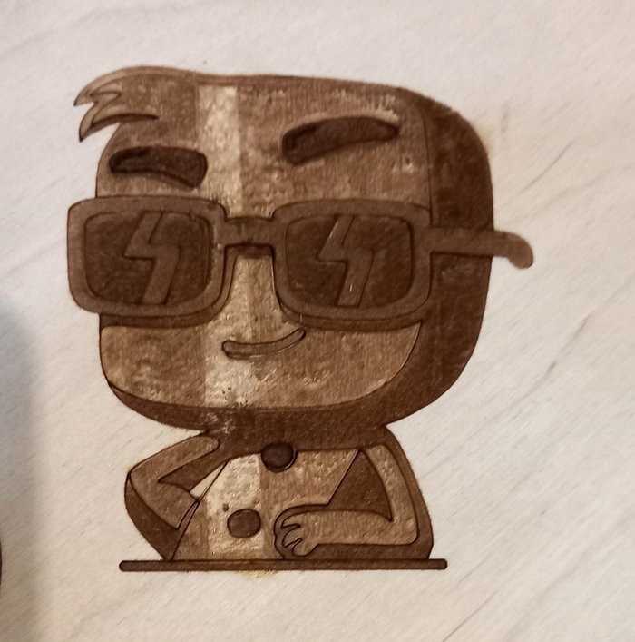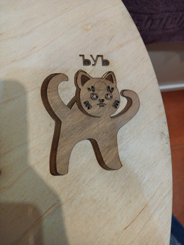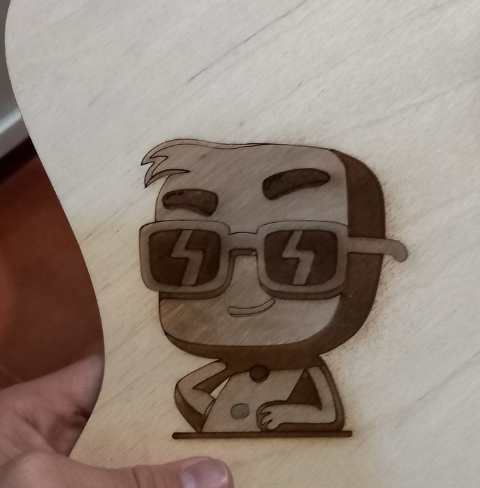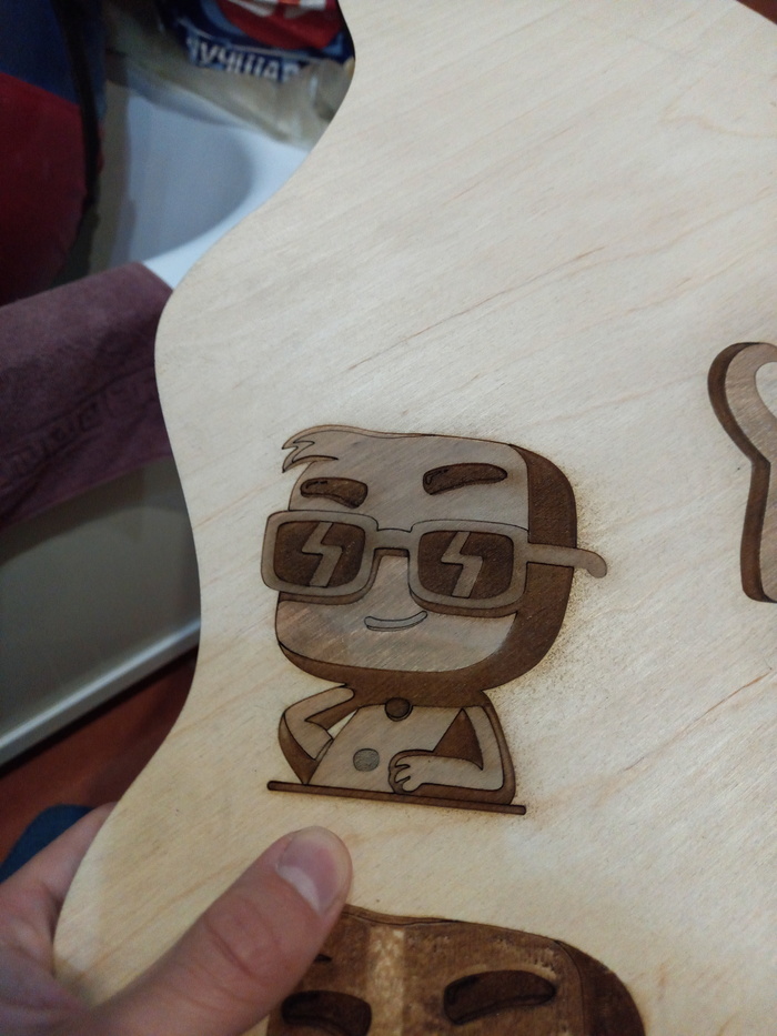 На второй день бог создал...Нет, на утро я включил лазер, загрузил макет и начал танцы с бубном вокруг LaserCut`a с настройкой режимов гравировки и прочими ништяками, так как, повторюсь, с этим оборудованием я в основном на "Вы" и изредка на "Р̶а̶б̶о̶т̶а̶й̶ ̶с̶у̶к̶а̶,̶ ̶п̶о̶ч̶е̶м̶у̶ ̶о̶н̶о̶ ̶н̶е̶ ̶р̶а̶б̶о̶т̶а̶е̶т̶" "ты". Особо интересного показать там нечего, тыкаешь разные мощности, скорость регулируешь, материшься, переделываешься, и так пока не получится что-то похожее на правду.