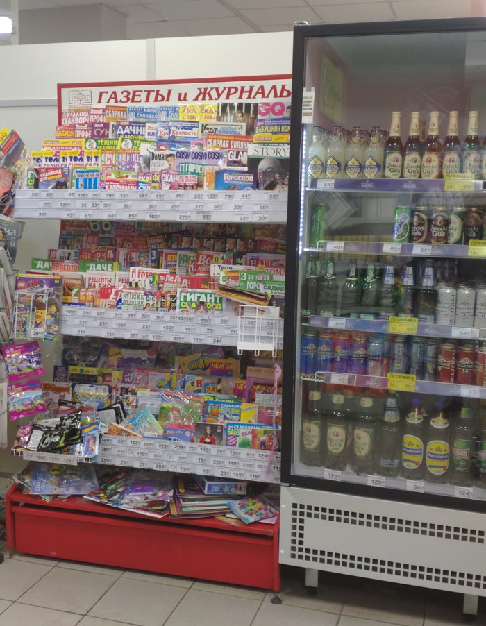 В конце перед выходом к кассам было ещё немного пива плюс газеты..