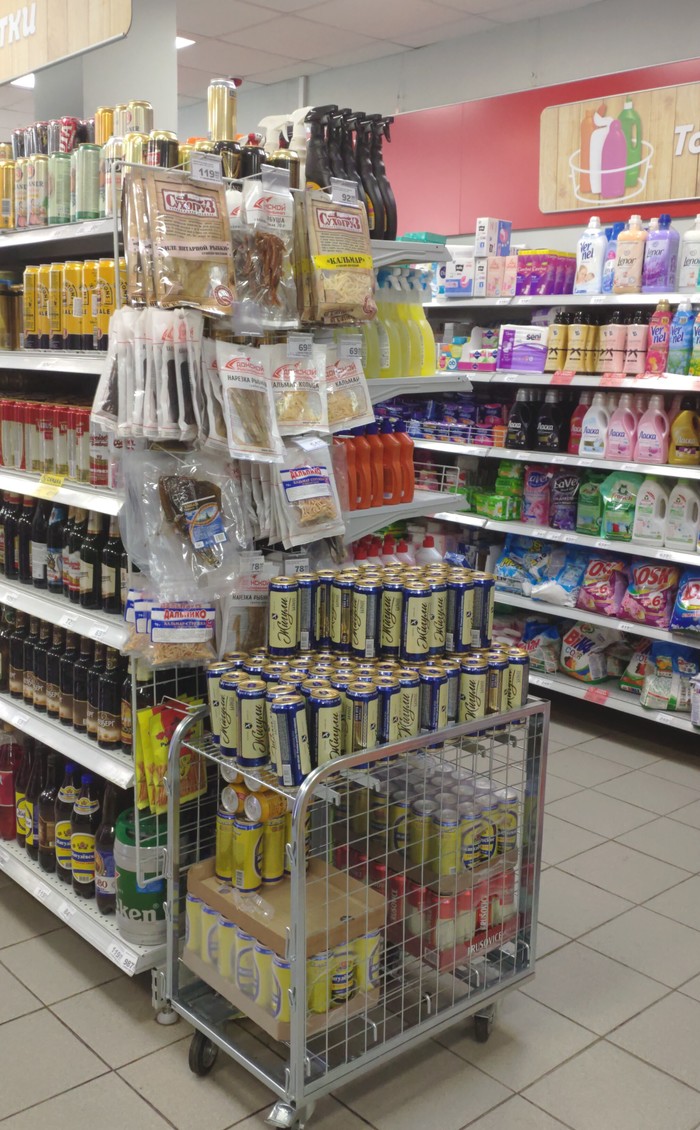 Но тут.. либо у местных мерчендайзеров беда с зонированием; либо практикуется поверье о том, что в поисках списка нужных продуктов рандомный покупатель наберёт выше списка... что вряд ли))
