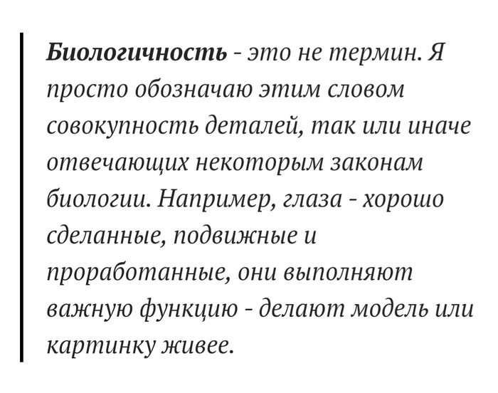 Другими словами, даже фентезийное чудовище, нарисованное в соответствии с законами биологии, выглядит более приятным глазу, нежели бездумно слепленная химера.