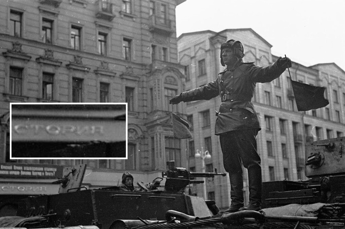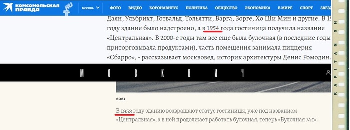 Но есть фото 1945 года, на котором еще видна часть вывески Астория. Даже если ресторан был переименован, то герои фильма "Место встречи изменить нельзя" могли называть его по старой памяти, как, например, после переименования станции метро Китай-город про нее еще долго говорили Площадь Ногина, а кинотеатр Пушкинский и по настоящее время именуют – «кинотеатр Россия».