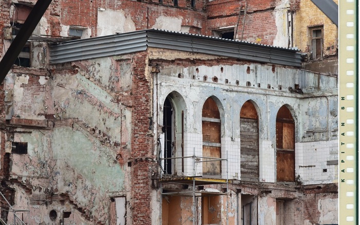 А теперь о грустном. В 2008 году было принято решение о реконструкции здания и под эту тему его снесли на три четверти, а может и больше. В настоящее время здание находится все в том же плачевном состоянии, что и 10 лет назад, хотя новый застройщик обещал за период 2020-2024 годы, полностью закончить реконструкцию. Но за два года ничего не изменилось.