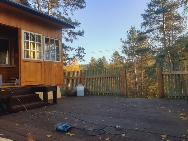 Оказалось, что у дома даже нет фундамента. Бревенчатые стены просто стояли на земле, а потому нижние брёвна сгнили. Новый хозяин (представился нам Евгением) системой домкратов приподнял дом и поменял нижние брёвна. Но всё оказалось тщетно.