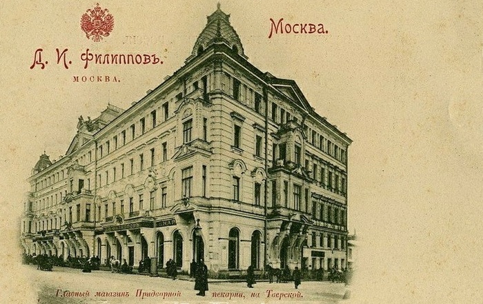 История тянется с конца 18 века, когда была построена усадьба фельдмаршала П.С. Салтыкова (прошу не путать с усадьбой Салтыковых на Тверском бульваре 27). Первую кардинальную перестройку дом пережил в 1837 году, именно тогда в нем начали появляться узнаваемые формы, дошедшие до конца 20 века. Тогда же здесь появилась булочная купцов Филипповых. К слову сказать, это были не просто пекарни – с них велись поставки даже ко двору. Не даром в 1855 году Император Александр II присваивает Ивану Филиппову звание «Поставщик двора Его Императорского Величества». Но вернемся к Тверской 10, выражаясь современным языком, они там открыли свой флагманский магазин. А вообще купцам Филипповым на момент 1878 года принадлежало, четыре булочных в Москве и четыре в Петербурге.
