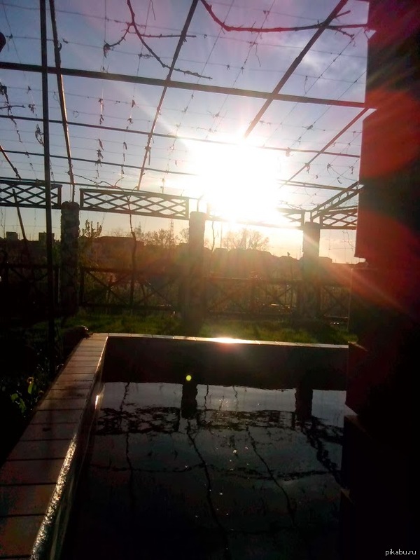 8 DELETED Вид из моей беседки 11 лет назад Сверху проволка для винограда летом будет по красивей, а так просто красивый момент. (я знаю что правильно проволока) [моё] Беседка Красиво Местность Солнце Закат