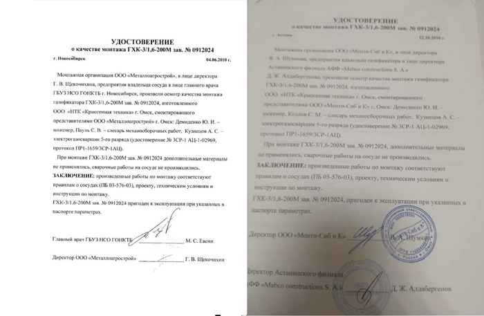 После этого работа закипела. Газификаторы купленные Шумковым с Омской ТЭЦ-5 были слегка подкрашены, документы красиво подделаны и далее оба газификатора поехали к своим счастливым владельцам. Один в Новосибирск в противотуберкулезную больницу на Вавилова 14А, второй в Астану на проспект Турана 38. В Новосибирск газификатор был реализован через фирму-однодневку "Металлоагрострой", а в Астану через ООО "Монти-Сиб и К"