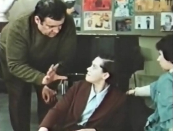 Рязанов: «Алиса Бруновна совершила, с моей точки зрения, актерский подвиг, на это способна только очень крупная актриса. Понимаете, она… От нее требовалось вообще не слыханное мужество, потому что в начале героиня абсолютно должна быть бесполым, унылым, очень плохо одетым существом, Которое не то, что не должно было вызывать симпатию, оно должно было вызывать скорее отвращение или отторжение. Это параграф, а не женщина. Она себя не пожалела, она себя поуродовала так, что… Вспомните, какая это жуткая это прическа, этот безликий коричневый костюм из Москвашвея, причем уже давно старого Москвашвея причем даже для тех пор. Какие-то немыслимые туфли, блузки, манера держаться. Это просто такой сухарь… Нет ни одного полового признака просто-напросто. Понять, что это женщина невозможно. И вообще это там не имеет никакого значения. Это существо хотелось назвать местоимением оно. Понимаете, это не он, не она, это оно! И это требовало от артистки, которая бросилась в эту роль, ну невероятной веры, что она сможет это преодолеть, понимаете?»