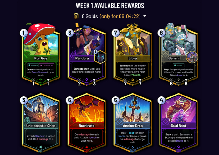 В ней вам не нужно покупать никаких стартовых наборов, чтобы начать зарабатывать. Достаточно просто играть и побеждать на героях в режиме Gauntlet или выполнять Daily Quests. Также игра очень приветствует новичков, давая им много наборов карт за повышение уровня. Но и не забывает про старых игроков, открывая им турниры выходного дня, где каждый может получить очень крутые награды для прокачки своей колоды.