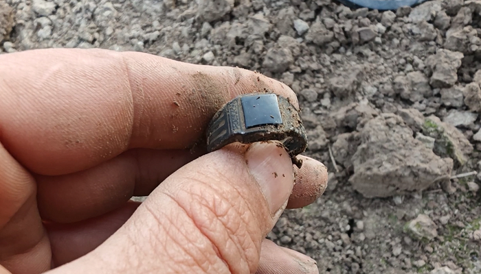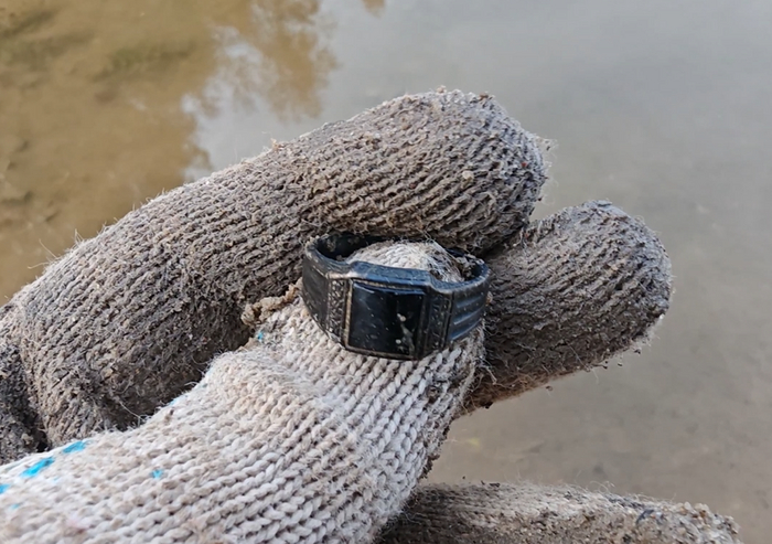 Запарившись выуживать непонятный, но однозначно цветной сигнал, уже было хотела плюнуть и пойти домой, как вдруг в скубе забрякало что-то железное (все, кто копает по воде, знают на слух бренчание чего-то небольшого и приятного, отличающегося, однако от монет))). Если, честно, я не ожидала увидеть золото: ведь лета то толком в этом году и не было😪