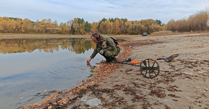 Второй пляж оказался почище первого, такого крупного мусора, как на первом пляже там не было. Однако на прежнем ровном пологом заходе в воду появились достаточно глубокая яма, а там, где было глубоко, наоборот стало мельче. Не знаю, что там произошло, может всплыла какая-нибудь масштабная коряга или деревяшка. И действительно за 5 копейками на четком цветном сигнале вынырнула реформенная монета в 50 рублей, за ними заржавевшие 10 и даже 10 копеек периода позднего СССР.