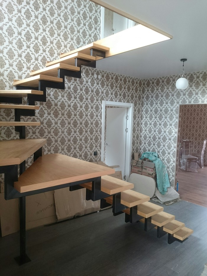 Как обычно ступени на такой металлокаркас крепят сверху. Плюсы: надежно, простота, доступность, ремонтопригодность. Минусы: эти заглушки на лицевой пласти ступеней портят весь вид.