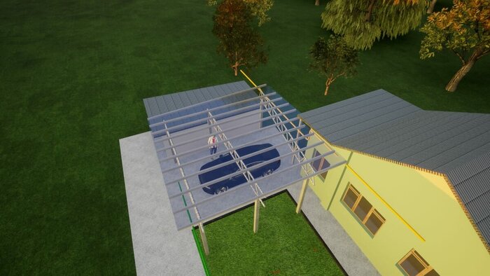 P.S. Еще в разработке идея убрать фермы, заменить их на прямоугольную трубу - балку, еще рисуем и считаем нагрузки, позднее планиру выложить что получится, при этом тоже сделать болтовое соединение и поставлять такие комплекты навесов по всей России, как мужской конструктор (как стол IKEA), а сейчас надо сделать расчеты и проект всех узлов и расчета металлоемкости в процессе..