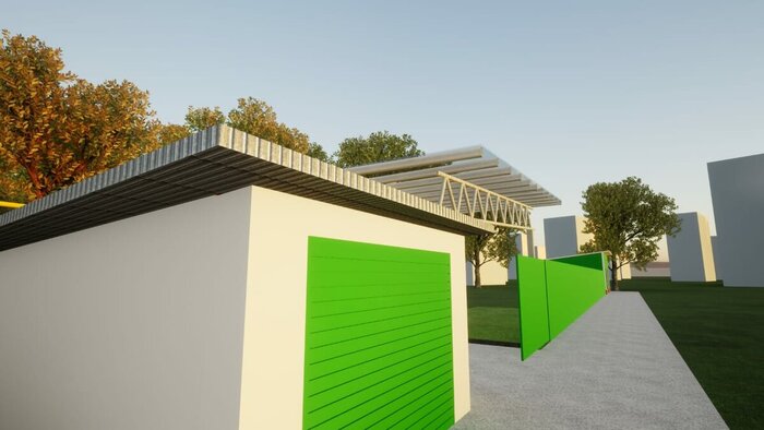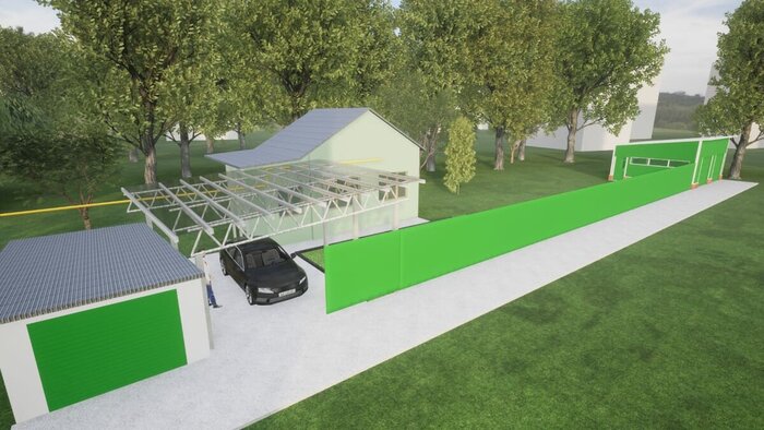 А кому интересно, там вдалеке на картинке, стоит гараж, сделали проект его, я уже писал ранее: Гараж 6х8х4м зеленого цвета, односкатная кровля, утепленный