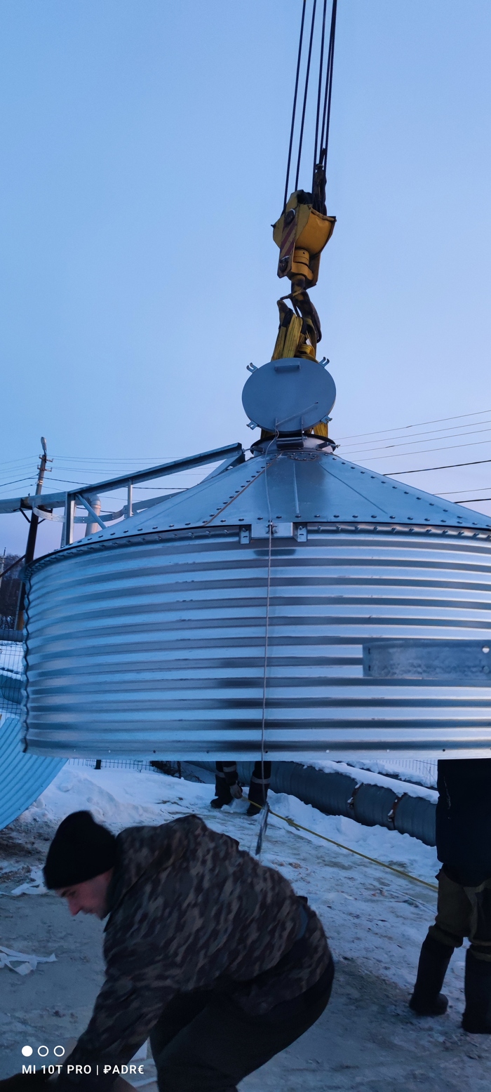 Так что мы собрали яйца в кулак, и до вечера собрали две конструкции, очень оперативно, без особых сложностей. Поднимали силос вот такой траверсой за горловину загрузки